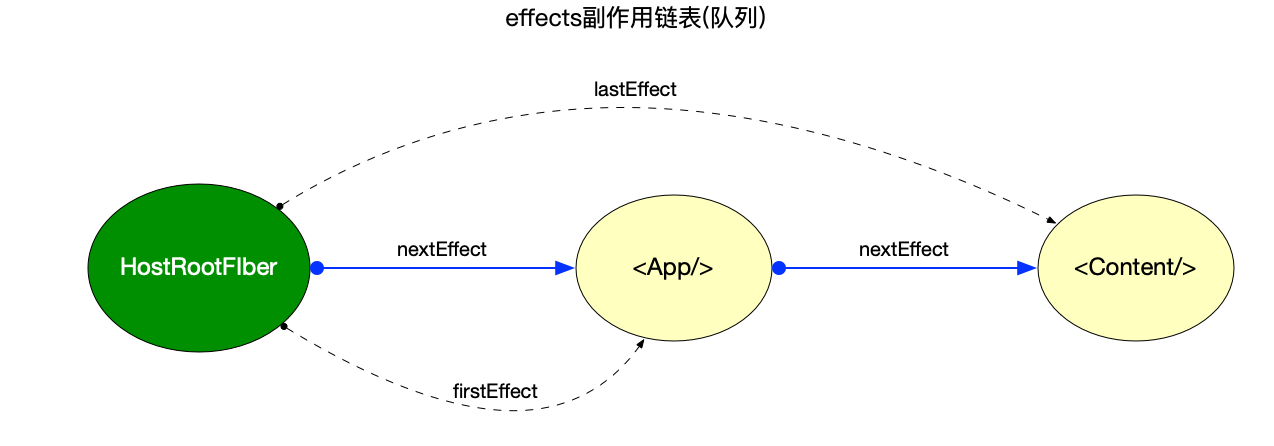 • fiber.firstEffect: 指向副作用链表中的第一个 fiber 节点.