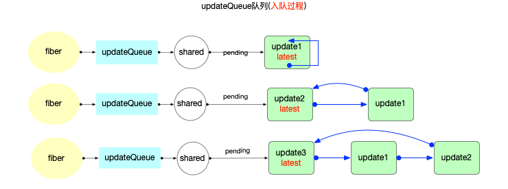 由于fiber.updateQueue.shared.pending是一个环形链表, 所以fiber.updateQueue.shared.pending永远指向末尾元素(保证快速添加新元素)